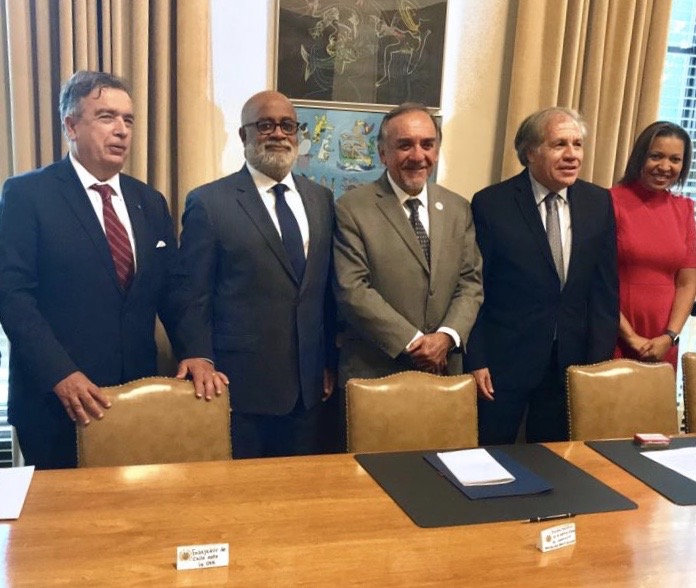H.E. Anton Edmunds, Permanent Representative of Saint Lucia to the OAS, in his capacity as Chair of the CARICOM Caucus of Ambassadors in Washington, D.C. on October 1, joined OAS Secretary General, Luis Almagro and the head of the Chilean Agency for International Development Cooperation (AGCID), Juan Pablo Lira, for the signing of an OAS-Chile-CARICOM Agreement.