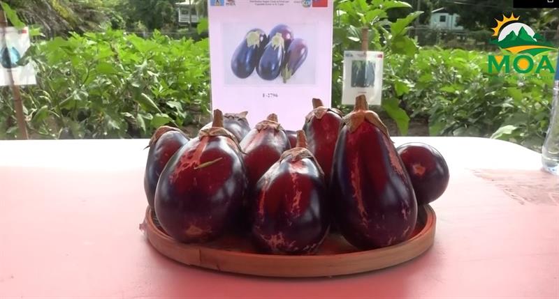 NEW VARIETIES OF EGGPLANTS HAVE BEEN INTRODUCED TO FARMERS UNDER THE SEVEN CROPS PROJECT AS PART OF EFFORTS TO ADDRESS THE NEED FOR DIVERSIFICATION.